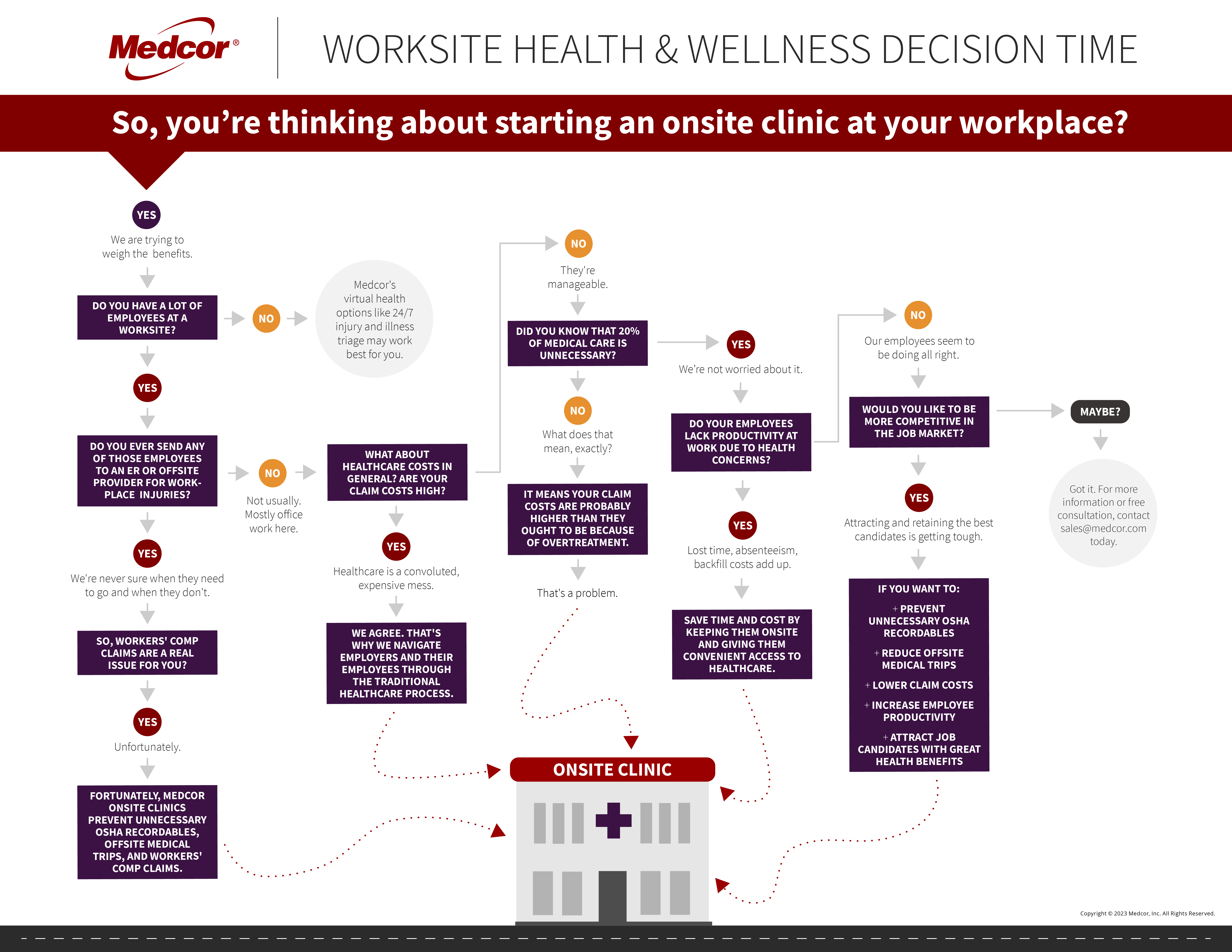 Medcor’s onsite solutions navigate a complex healthcare system so you don’t have to – preventing unnecessary claims, keeping people out of the traditional healthcare system who don’t need to be there, and preventing overtreatments and overprescribing, which are tremendous cost-drivers in traditional healthcare.